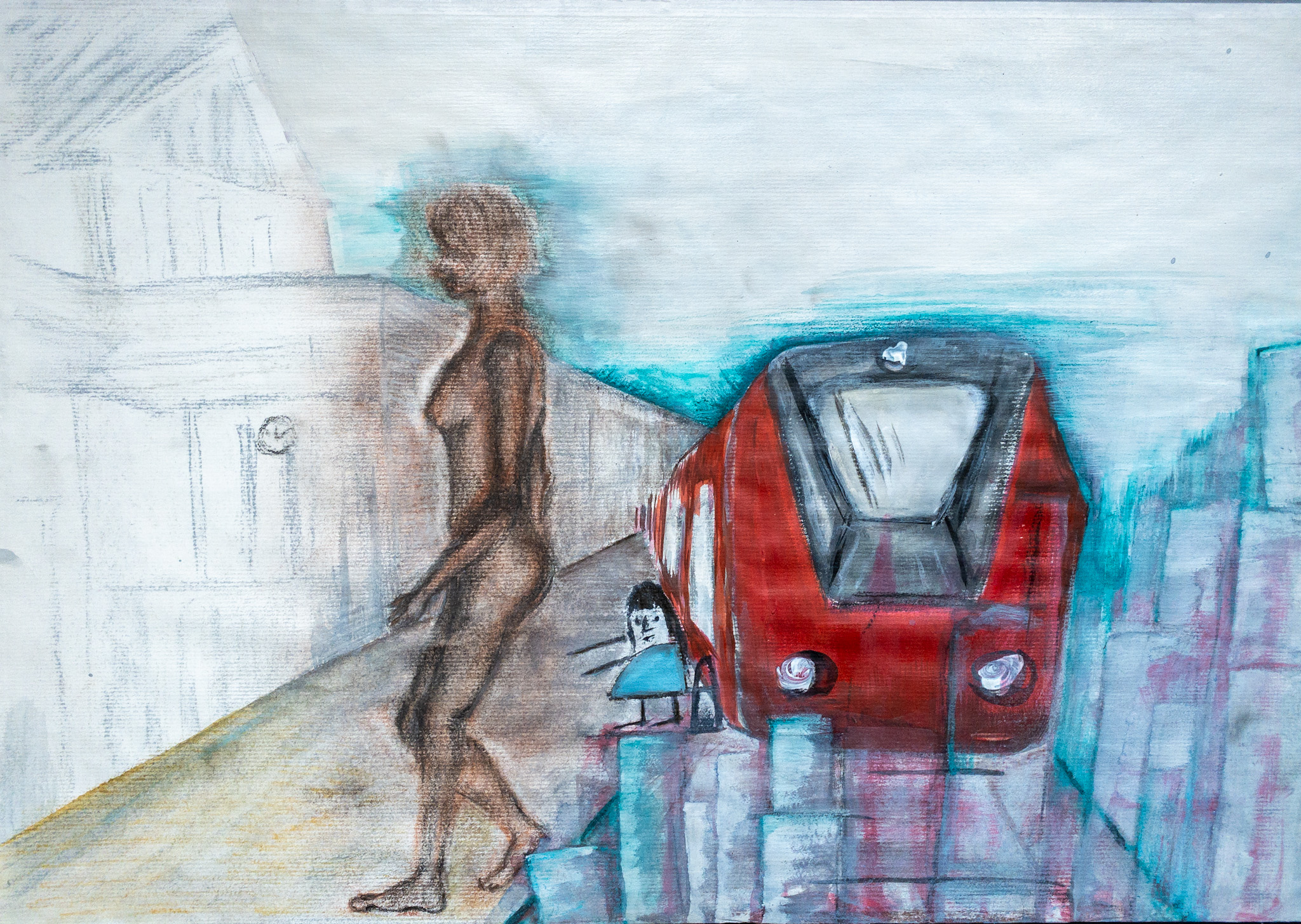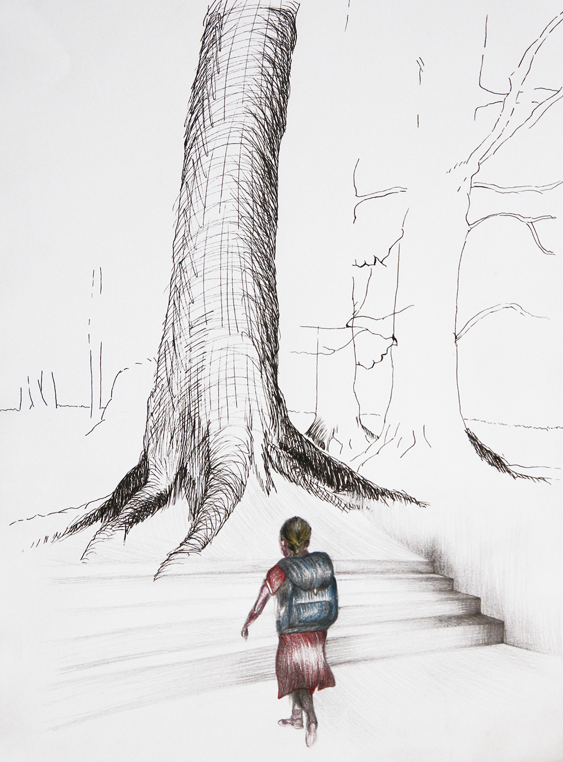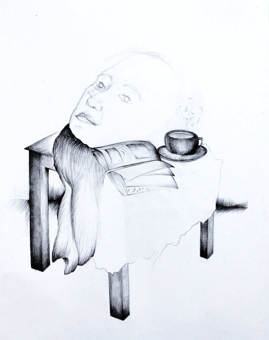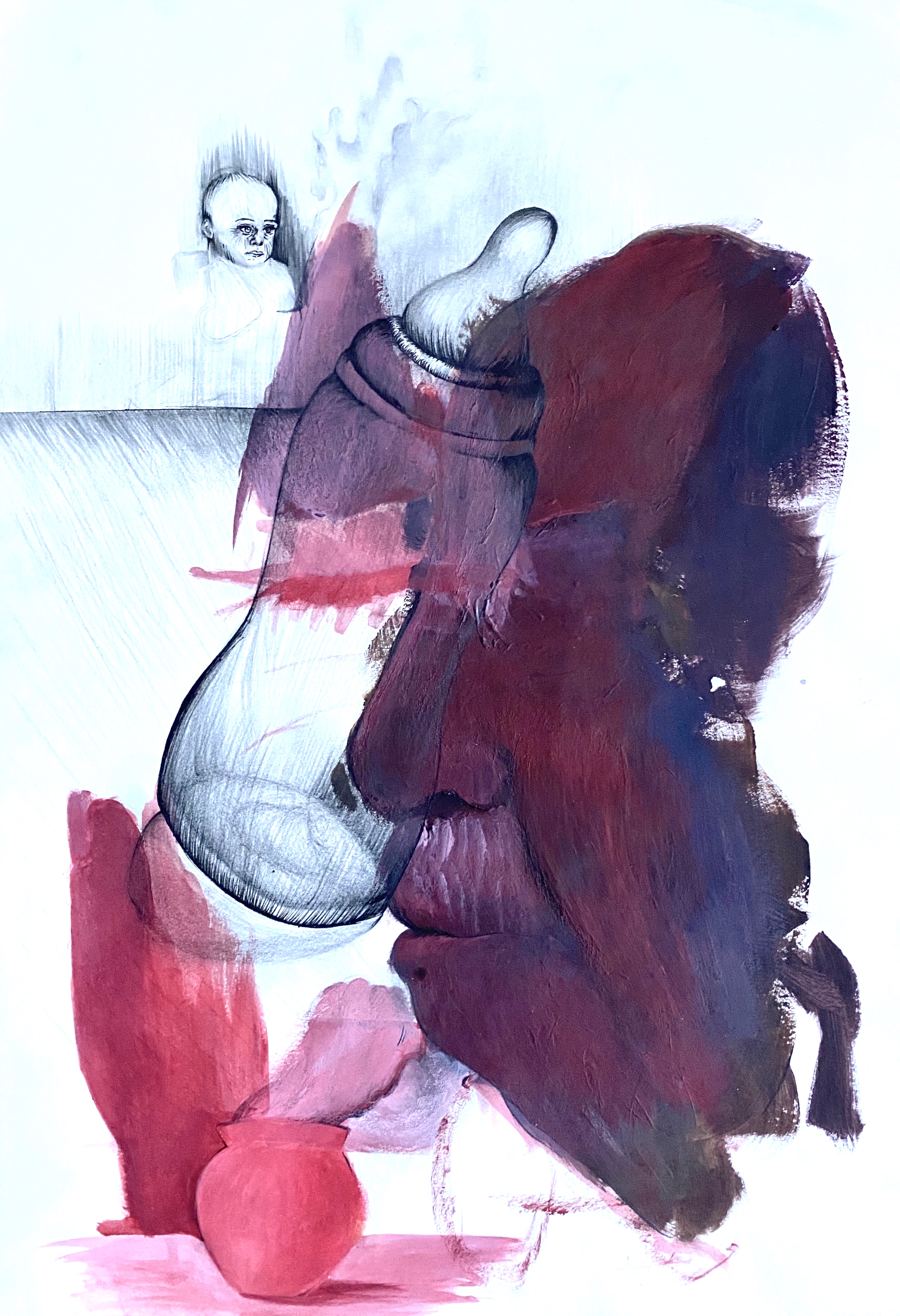 Das Höhlengleichnis Mischtechnik auf Papier 50 x 40 cmVersteck Öl auf Leinwand 30 x 24 cmSelbstportrait Kohle und Bleistift auf Papier 42 x 29 cmIn der Fremde Mischtechnik auf Papier 30 x 40 cmWenig haben die Kinder zu sagen Mischtechnik auf Papier 42 x 30 cmWar im Schulrucksack alles drinnen Mischtechnik auf Papier 29 x 21 cmFrühstückstisch Bleistift auf Papier 36 x 29 cm